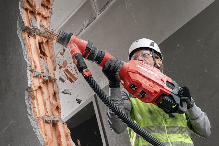 Sie möchten Korrekturarbeiten an Betonoberflächen von bis zu 4 m² vornehmen? Fliesen abschlagen? Kleine Durchführungen in Mauerwerk schaffen? Entscheiden Sie sich für unsere Hilti Akku-Meißelhämmer für den Wandabbruch auf der Nuron-Akkuplattform. Maximieren Sie Ihre Produktivität, indem Sie mit einem Akku arbeiten, während der zweite lädt.