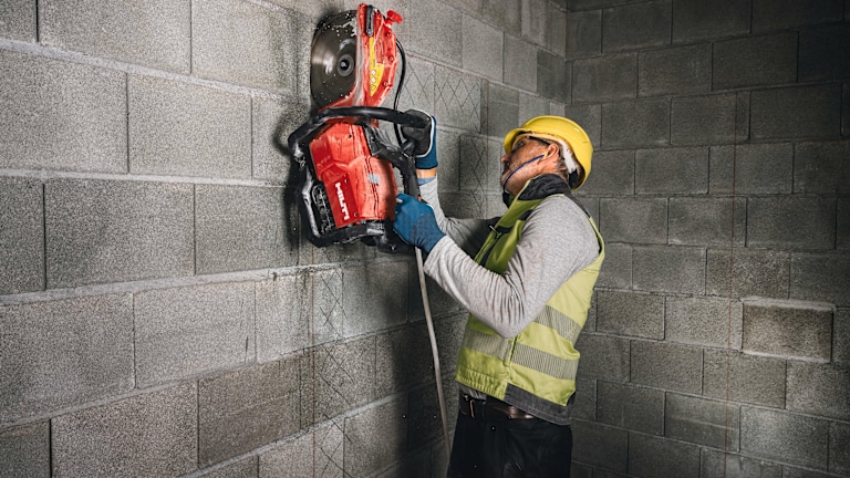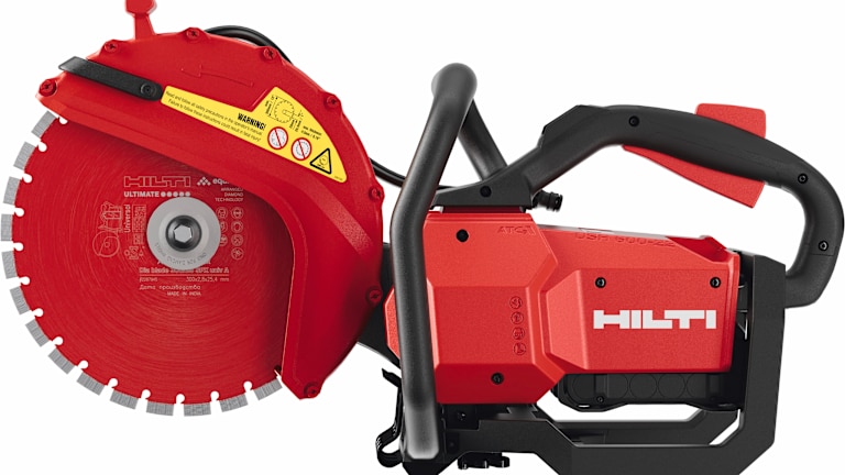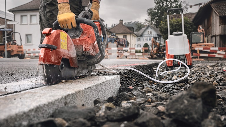 Der akkubetriebene Trennschleifer bietet im Arbeitsalltag zahlreiche Vorteile. Die Produktivität wird allein dadurch gesteigert, dass der Trennschleifer mit einem einfachen Startschalter betriebsbereit ist. Zudem ist der bürstenlose Motor deutlich wartungsärmer als ein Zweitaktmotor und das routinemäßige und zeitaufwendige Wechseln von Verschleißteilen entfällt. Eine weitere Entlastung im Arbeitsalltag ergibt sich durch das geräuschreduzierte, vibrationsarme und abgasfreie Arbeiten, wodurch eine längere und schonendere Anwendung für die Nutzer – sogar in Innenräumen – ermöglicht wird. Die Schnittleistung des Akku-Trennschleifers DSH 700-22 ATC und DSH 600-22 ATC steht einem benzinbetriebenen Trennschleifer der gleichen Leistungsklasse in nichts nach, wenn die Hilti Produktplattform genutzt wird. Dazu gehören die optimierten Trennscheiben, die weniger Reibung erzeugen und daher effizienter schneiden. Weitere Vorteile zeigen sich bei der Schnittgenauigkeit von Beton und Bordsteinkanten sowie der Schnitttiefe. Mit den SPX Universal A Diamanttrennscheiben sind sensible Schnitte möglich, da die Scheibe ruhiger läuft. Durch den Antriebsarm wird mit einer Trennscheibe von 300 mm eine Schnitttiefe von 120 mm erreicht. Zusätzlich wird durch das Zuführen von Wasser, zum Beispiel mit dem akkubetriebenen Wasserzuführsystem DWP 15-22, die Schnittleistung pro Akku deutlich erhöht. Durch die Wahl der richtigen Scheibe in Verbindung mit der Zufuhr von Wasser, kann die Schnittleistung pro Akku sogar verdoppelt werden.