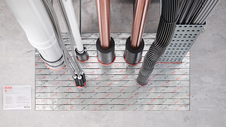 Ob Kabel-, Rohr- oder Kombiabschottungen – mit der allgemeinen Bauartgenehmigung des Deutschen Instituts für Bautechnik (DIBt) Z-19.53-2423 deckt der flexible Brandschutzstein CFS-FS L ein breites Spektrum ab. Er kann für vorübergehende oder dauerhafte Brandabschottung in mittleren bis großen Wand- und Deckenöffnungen eingesetzt werden. Die EI90 zugelassene Brandschutzlösung ist geeignet für leere Öffnungen, Kabel, Kabelrinnen sowie brennbare Rohre bis 110 Millimeter Durchmesser und nicht brennbare Rohre mit und ohne Dämmung. Der flexible Brandschutzstein lässt sich einfach und sauber ohne Elektrowerkzeug schneiden und ist daher ideal für Räume, in denen Staub- und Faserfreiheit gefordert sind wie Serverräume, Labore oder Krankenhäuser.