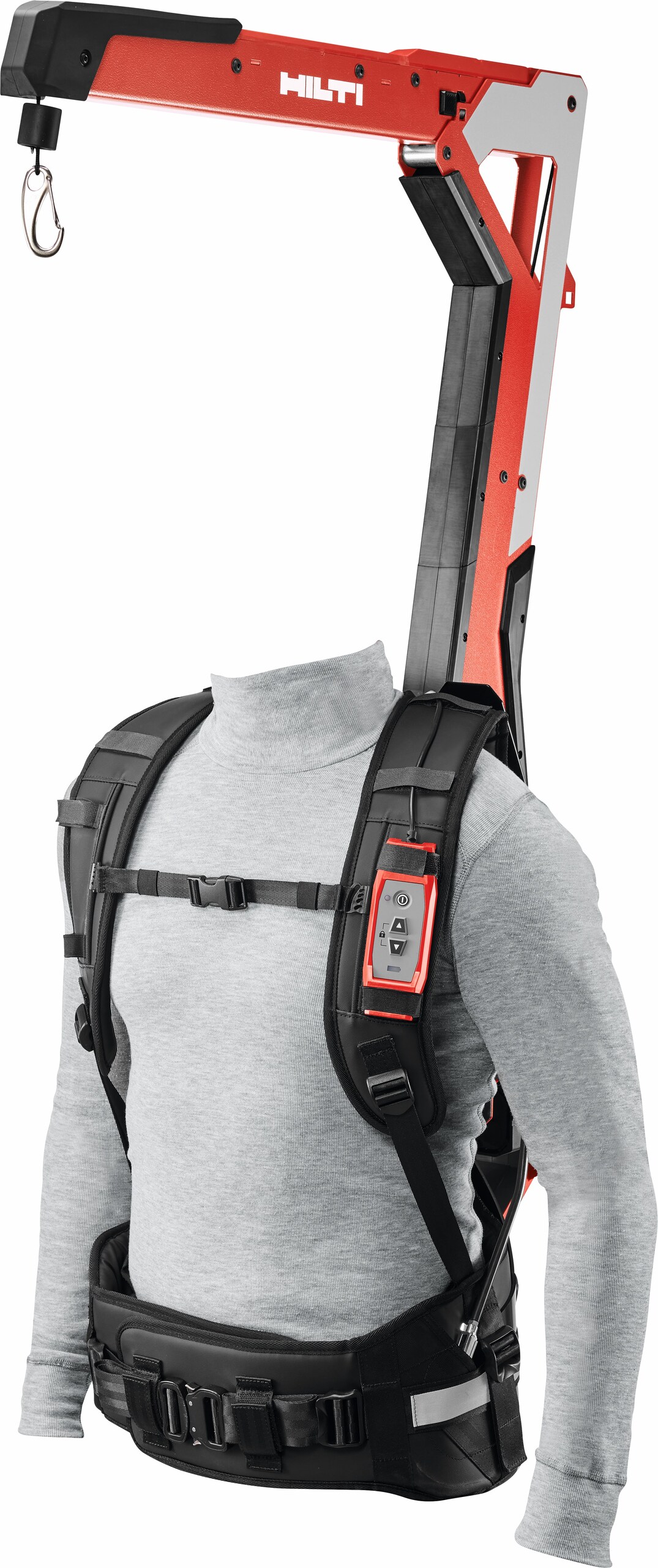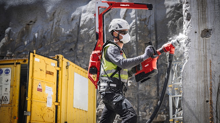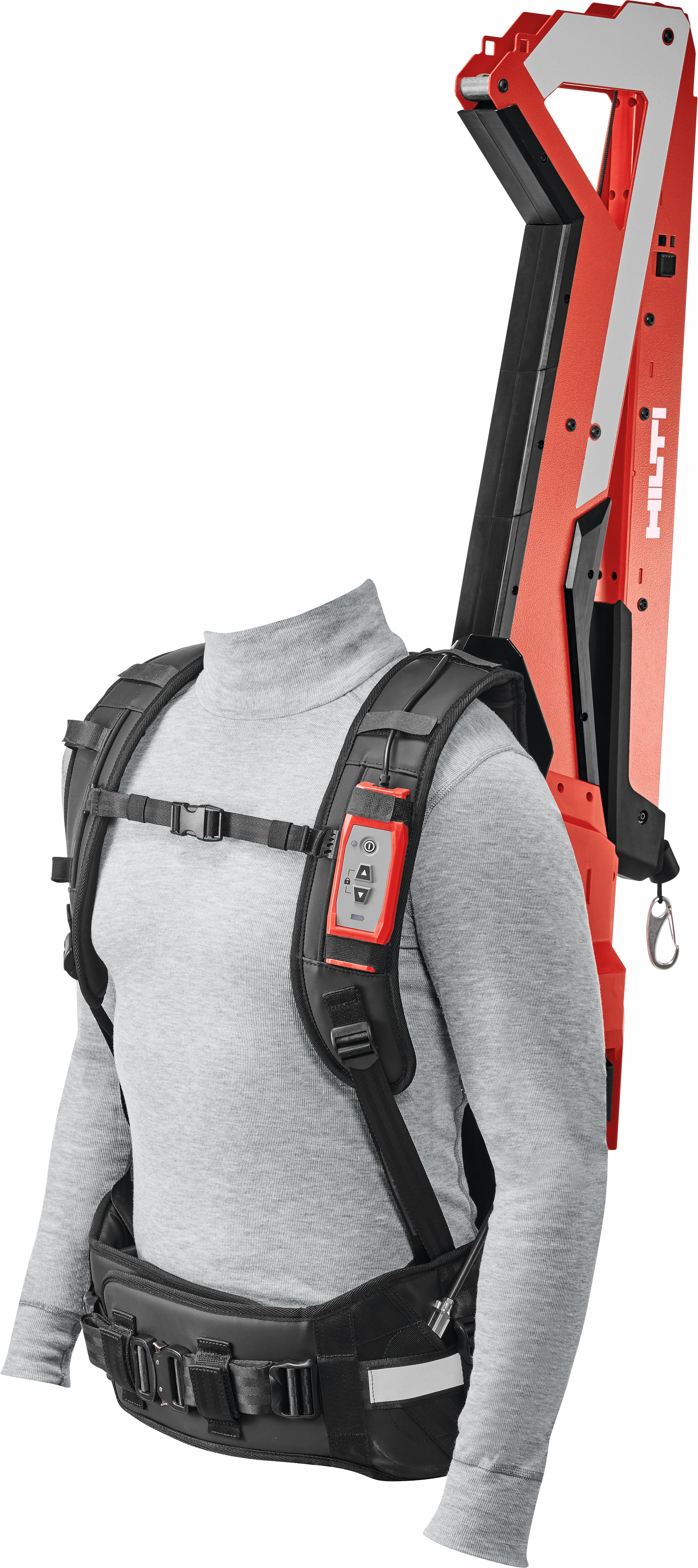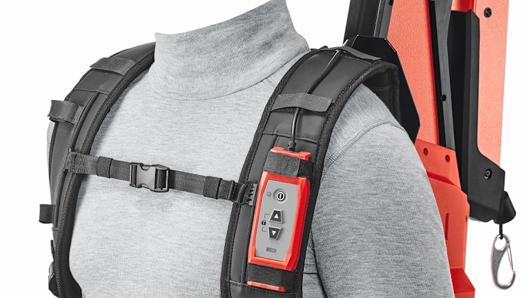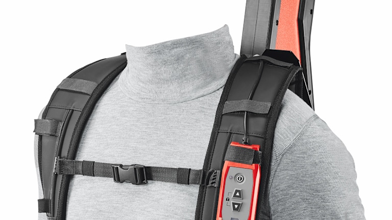 Der Toolbalancer EXO-T-22 von Hilti wurde speziell für Wandarbeiten entwickelt. Das Exoskelett erleichtert Wandabbrüche, Wandabtragungen, Wandbohrungen sowie Wandfliesenabbrüche, indem es das Gerätegewicht bis zu 17 kg von den Armen nimmt. Das EXO-T-22 ist ein aktives Exoskelett, sprich akkubetrieben, und integriert sich in das Nuron Akku-Systems.