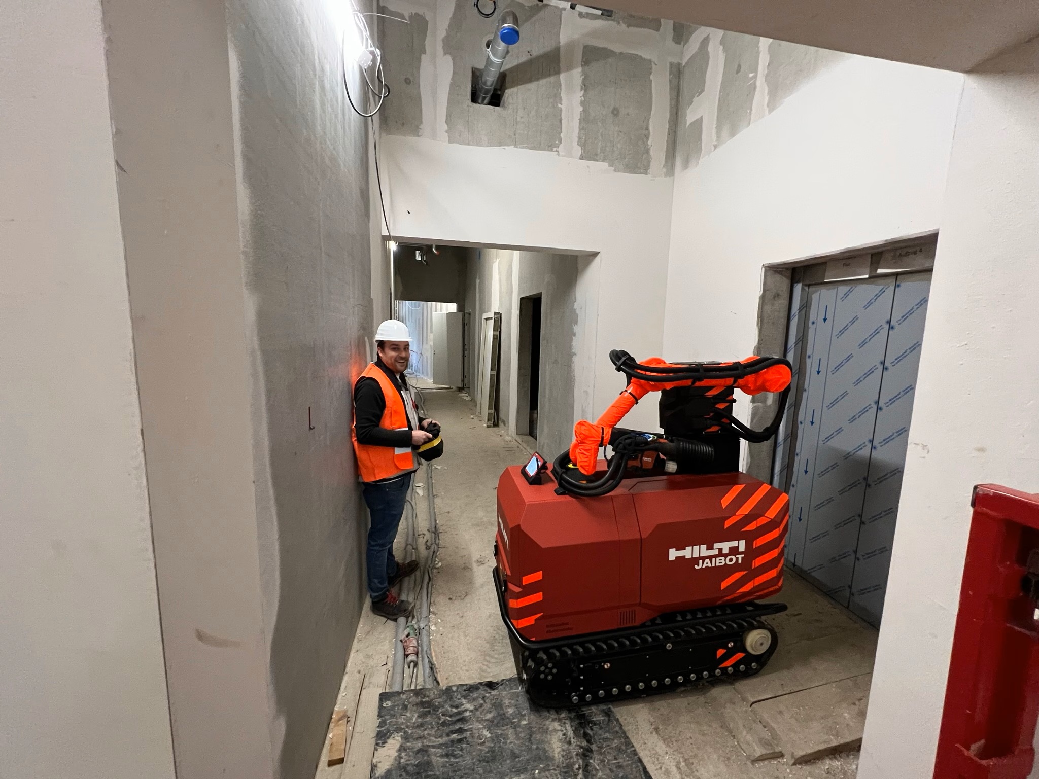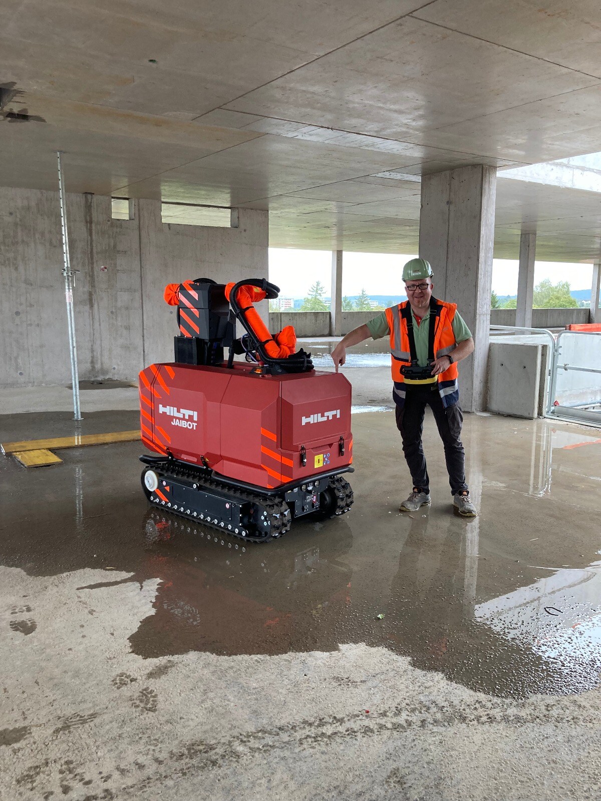Paradigmenwechsel in der Baubranche Der Jaibot ist ein Hilfsmittel zum Paradigmenwechsel in der Baubranche und bringt einen durchdachten und angenehmen Transformationsprozess mit sich. Unternehmen, die bereits BIM-basierte Planungen und Ausführungsmodelle von Hilti nutzen, haben bereits eine perfekte Datengrundlage für den semi-autonomen Helfer. Aber auch Unternehmen, die noch nicht mit BIM arbeiten, können von dem Jaibot profitieren. Hilti unterstützt bei der Vermessung und Überführung in ein digitales Datenmodell sowie der Integration der benötigten Bohrpunkte und Bohrdimensionen. Nach einem Training am Einsatzort ist der ausführende Betrieb selbst in der Lage, den Jaibot zu bedienen, wenngleich Hilti während des gesamten Projekts unterstützend zur Seite steht. „Es ist nicht schwer mit dem Jaibot zu fahren. Bereits nach kurzer Eingewöhnung kam ich gut mit der Fernsteuerung des Jaibot zurecht. Am praktikabelsten ist der Jaibot natürlich, wenn man in einem hindernisfreien Raum arbeiten kann. Diese Situation war uns nicht gegeben. Aber durch die Hinderniserkennungsfunktion wird Kollisionen automatisch vorgebeugt“, berichtet Detlef Dohms, Mitarbeiter der Frietsch Gipser- und Stukkateur GmbH.