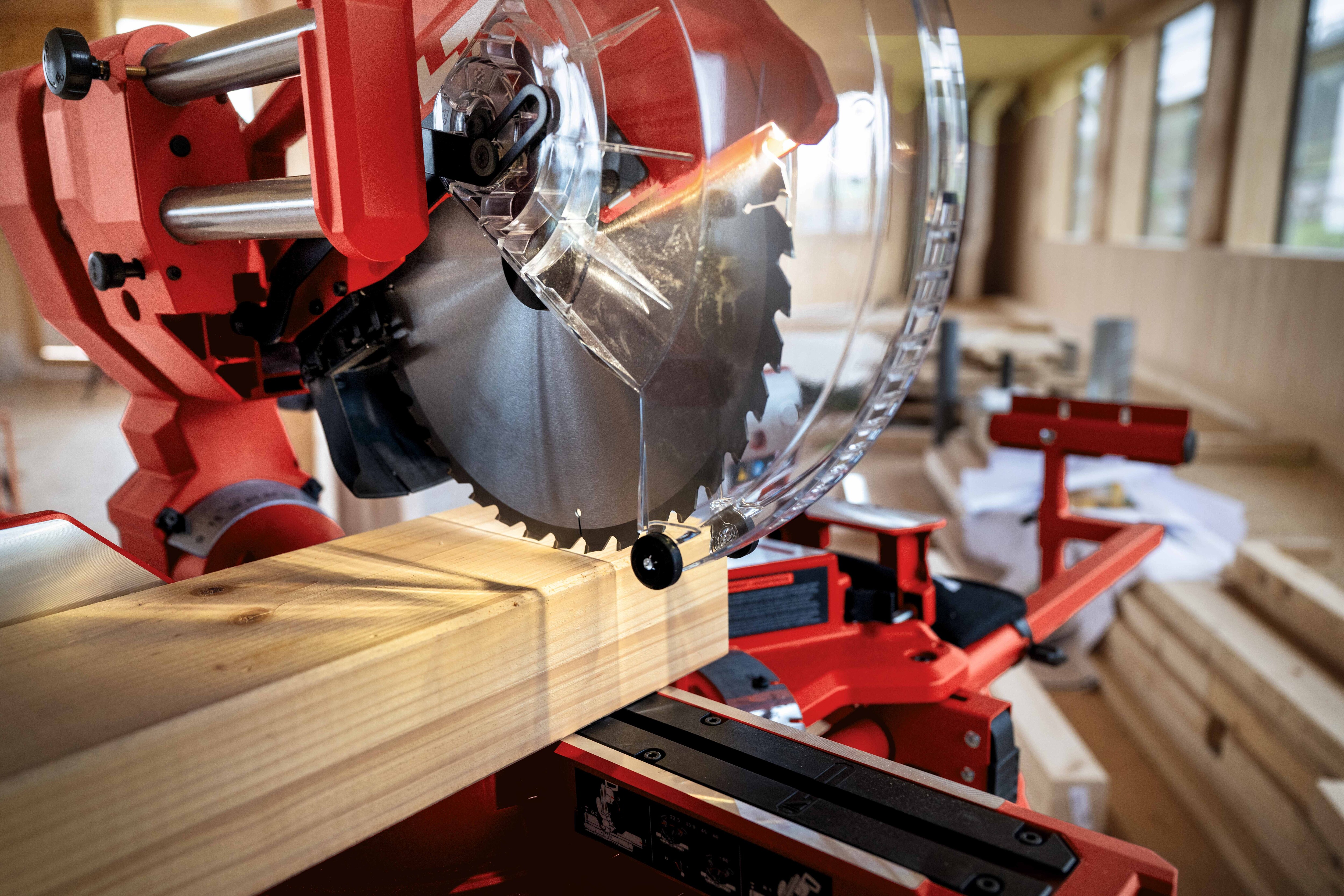 Die SM 60-22 ermöglicht Gehrungsschnitte bis zu 60 Grad nach rechts und 52 Grad nach links sowie einen beidseitigen Neigungswinkel von bis zu 48 Grad für präzise und gleichmäßige Schnitte über die gesamte Lebensdauer der Säge. Hilti hat diese Säge außerdem mit einer LED im Sägekopf ausgestattet. Sie ermöglicht ein schnelles und präzises Ausrichten des Werkstücks, selbst bei schlechten Lichtverhältnissen. Die Schnittlinie wird durch den Schatten des Sägeblatts präzise auf die Werkstückoberfläche geworfen. Dadurch wird die Ausführung der Schnitte erleichtert und der Materialverlust reduziert. Die Fixierung des Werkstücks erfolgt über Spannvorrichtungen am Sägeteller und am Sägetisch. Beim Sägen von Nuten wird die Schnitttiefe über den Tiefenanschlag eingestellt.