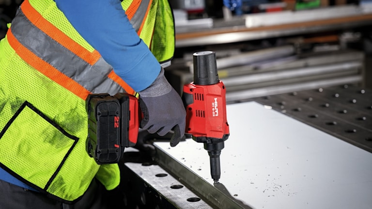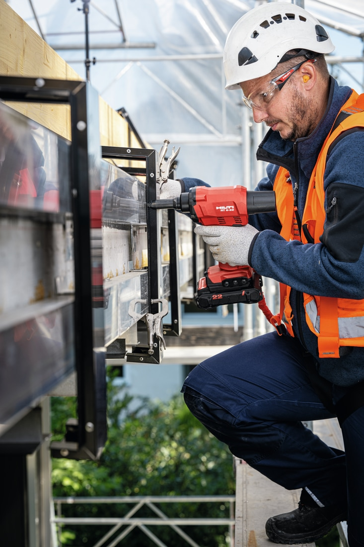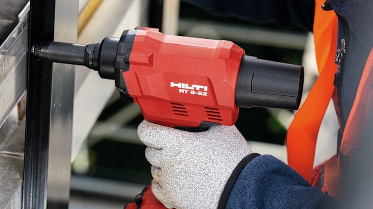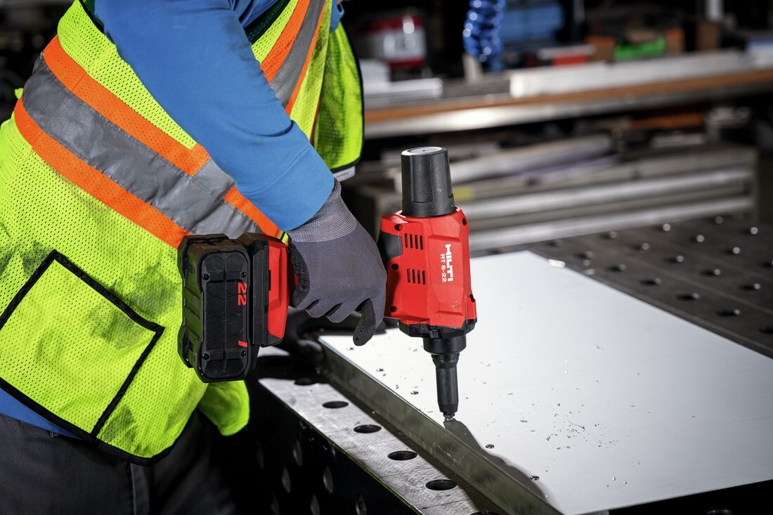 Kaufering, 10. Januar 2024 – Das Akku-Blindnietgerät RT 6-22 von Hilti wurde für die anspruchsvolle Montage von Verkleidungen und Fassaden in dem leistungsstarken Nuron Akku-System entwickelt. Das Akku-Blindnietgerät verspricht mehr Effizienz, Flexibilität und Leistung. Die Optimierung des Gerätes in Kombination mit den Vorteilen des Nuron 22 Volt Akku-System vereinfacht, beschleunigt und gestaltet die Arbeitsabläufe sicherer.