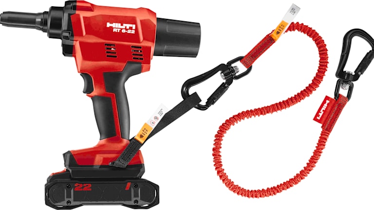 Das ergonomische Design des Gerätes sorgt für einen hohen Bedienkomfort und minimiert Ermüdungserscheinungen – selbst bei langen Arbeitszeiten. Das leichte Gehäuse, das perfekt ausbalancierte Gerät und die rutschfesten Griffe tragen zur Verbesserung der Bedienbarkeit bei. Das Akku-Blindnietgerät RT 6-22 verfügt über integrierte Sicherheitsfunktionen wie eine Verriegelung gegen unbeabsichtigtes Auslösen. Die integrierte LED-Leuchte sorgt für eine optimale Ausleuchtung während der Anwendung. In größeren Höhen empfiehlt sich die Verwendung der Absturzsicherung, die das Gerät bei ungewolltem Loslassen auffängt.