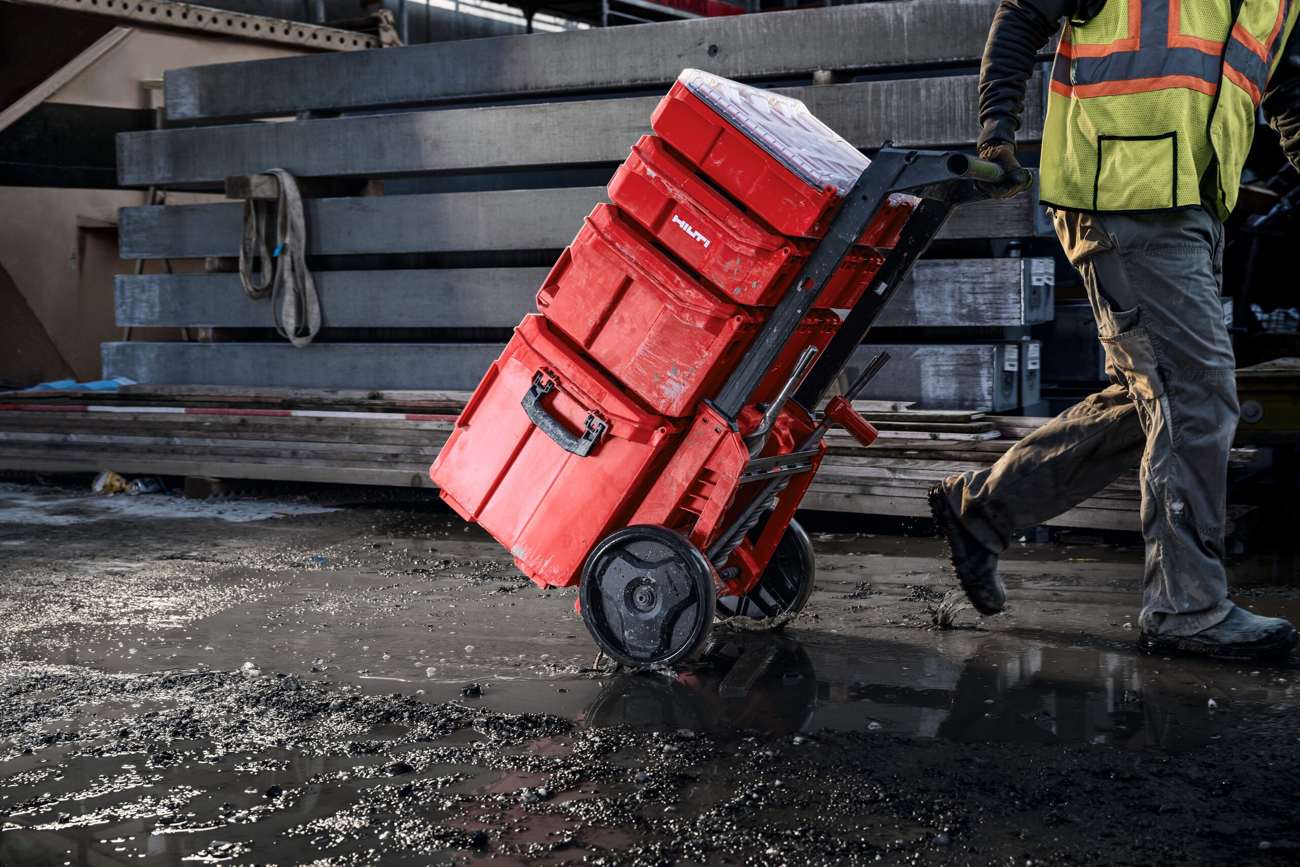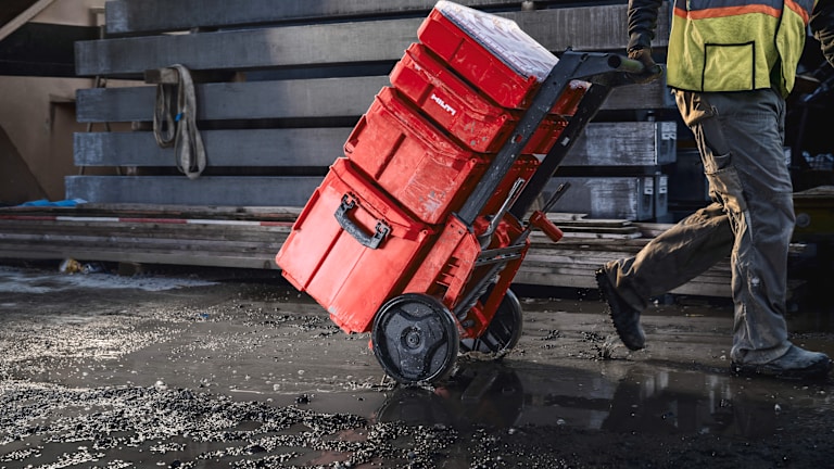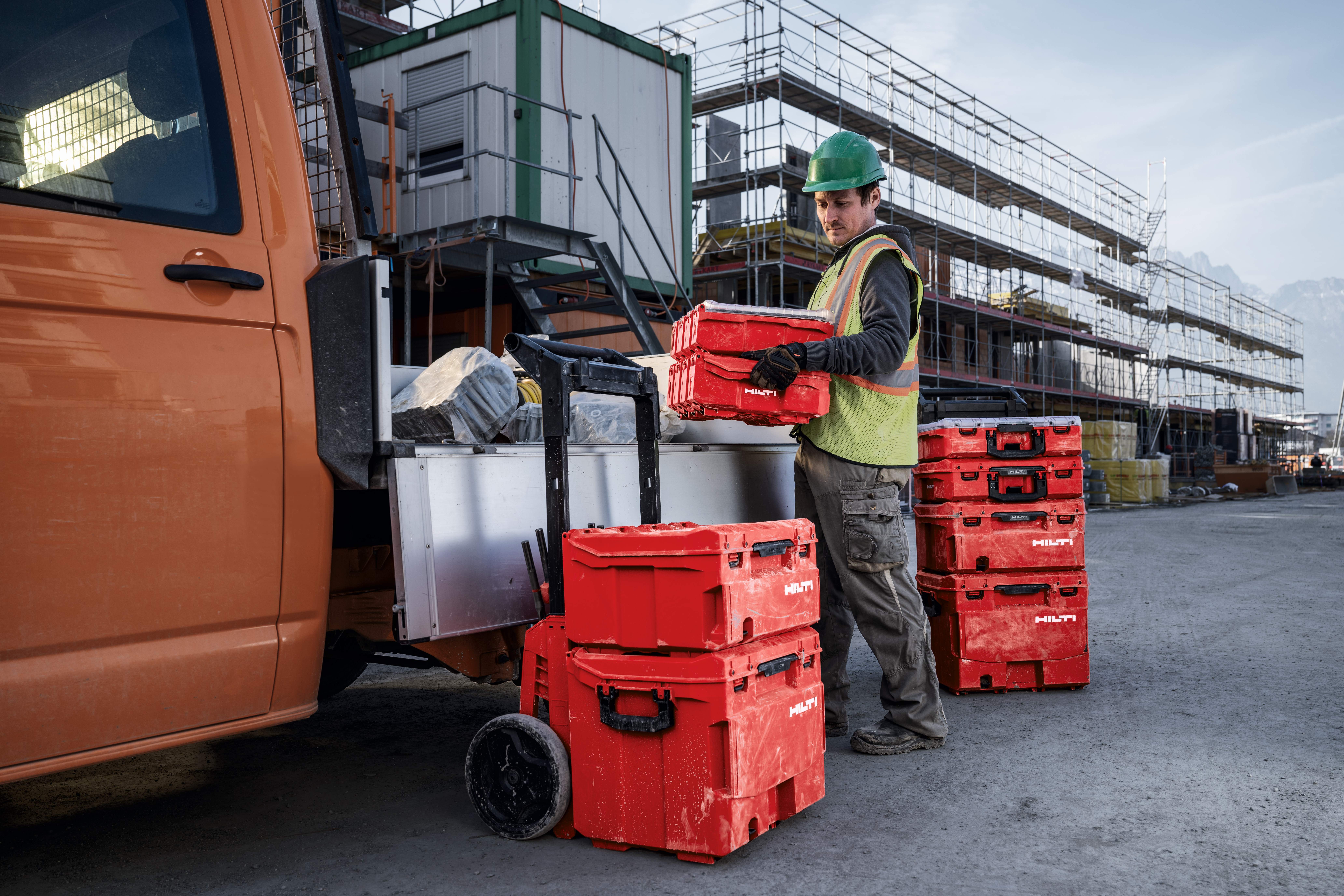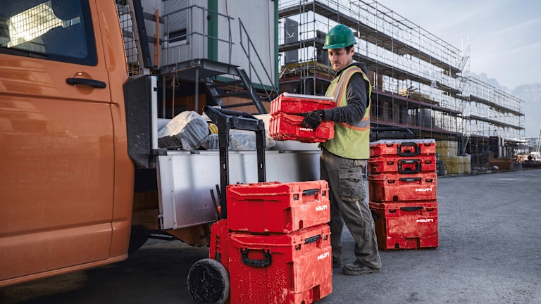 Professionelle Bauunternehmer und Handwerker verbringen einen großen Teil ihrer täglichen Routine mit der Vorbereitung und Mobilisierung der Arbeitsmittel. Das mehrfache Tragen von Werkzeugen zum Einsatzort gehört zum Arbeitsalltag und kann aufgrund von unsystematischen Transportbehältern zu einem erheblichen Verlust an produktiver Zeit führen.