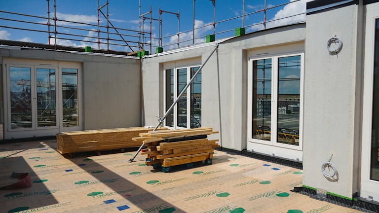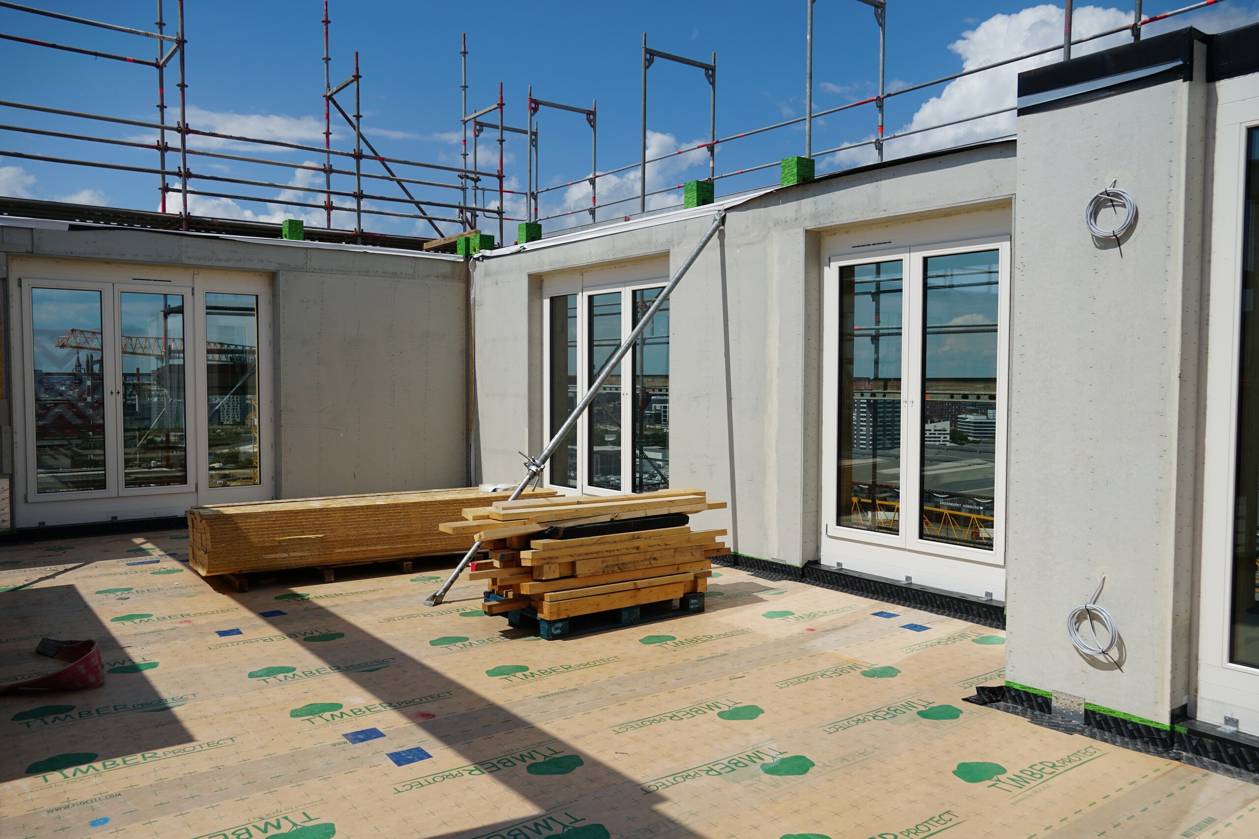 Damit der Bauablauf im mehrgeschossigen Holzbau reibungslos funktioniert und Effekte wie beispielsweise ein hoher Grad der Vorfertigung von Holzbauteilen, die einen schnelleren Baufortschritt ermöglichen, zum Tragen kommen, ist eine detaillierte Vorplanung erforderlich. Damit ist der Planungsprozess im Vergleich zum Massivbau umgedreht, bei dem die Detailplanung baubegleitend erfolgt. Im Projekt „Roots“ betrug allein die Vorplanung zwei Jahre; bei den Planungsmeetings saßen alle am Bauvorhaben Beteiligten, angefangen beim Investor über die TGA-Planer, Bauplaner, Sachverständige für Brandschutz sowie Hilti für den baulichen Brandschutz und Brandschutz-Ingenieurberatung, an einem Tisch. Auch die Holzbaufirma war fester Teil des Planungsteams und in Vorplanung mit eingebunden. „Der frühe Planungsprozess ist bei Holzbauprojekten ungemein wichtig, da nur so gewährleistet ist, dass der Einsatz aller beim Bau Beteiligten gut abgestimmt ist“, so Benedict Pielmeier, Projektleiter & Bauleiter „Roots“, GARBE Immobilien Projekte GmbH.