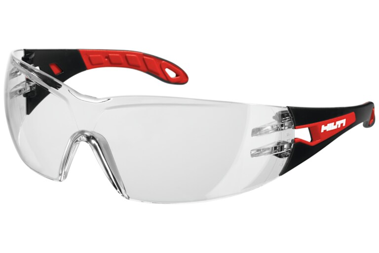 Schutzbrillen sowie Sicherheits- und Haltegurte für eine umfassende persönliche Schutzausrüstung auf der Baustelle.