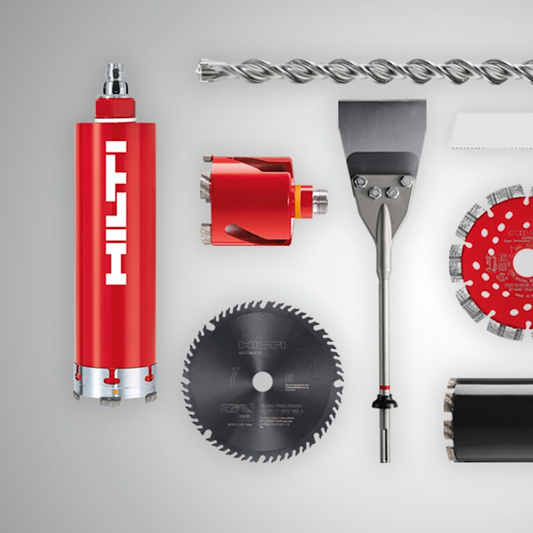 Entdecken Sie Hilti Werkzeugeinsätze für schnelleres und längeres Arbeiten: Bohrer, Meißel, Bohrkronen, Schleifmittel, Sägeblätter und vieles mehr.
