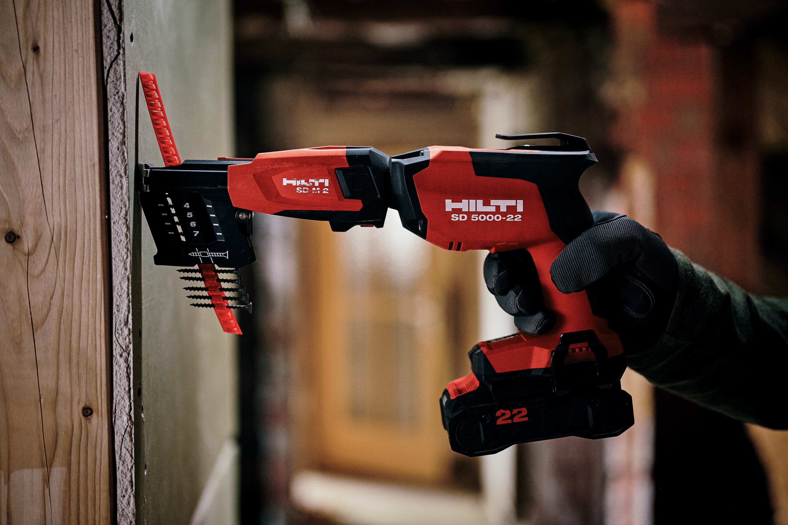 Akku-Trockenbauschrauber mit leistungsstarkem Nuron Akku für ein höheres Drehmoment und mehr Schrauben pro Ladung beim Befestigen von leichten Trockenbauwänden, Holzplatten und Außenverkleidungen