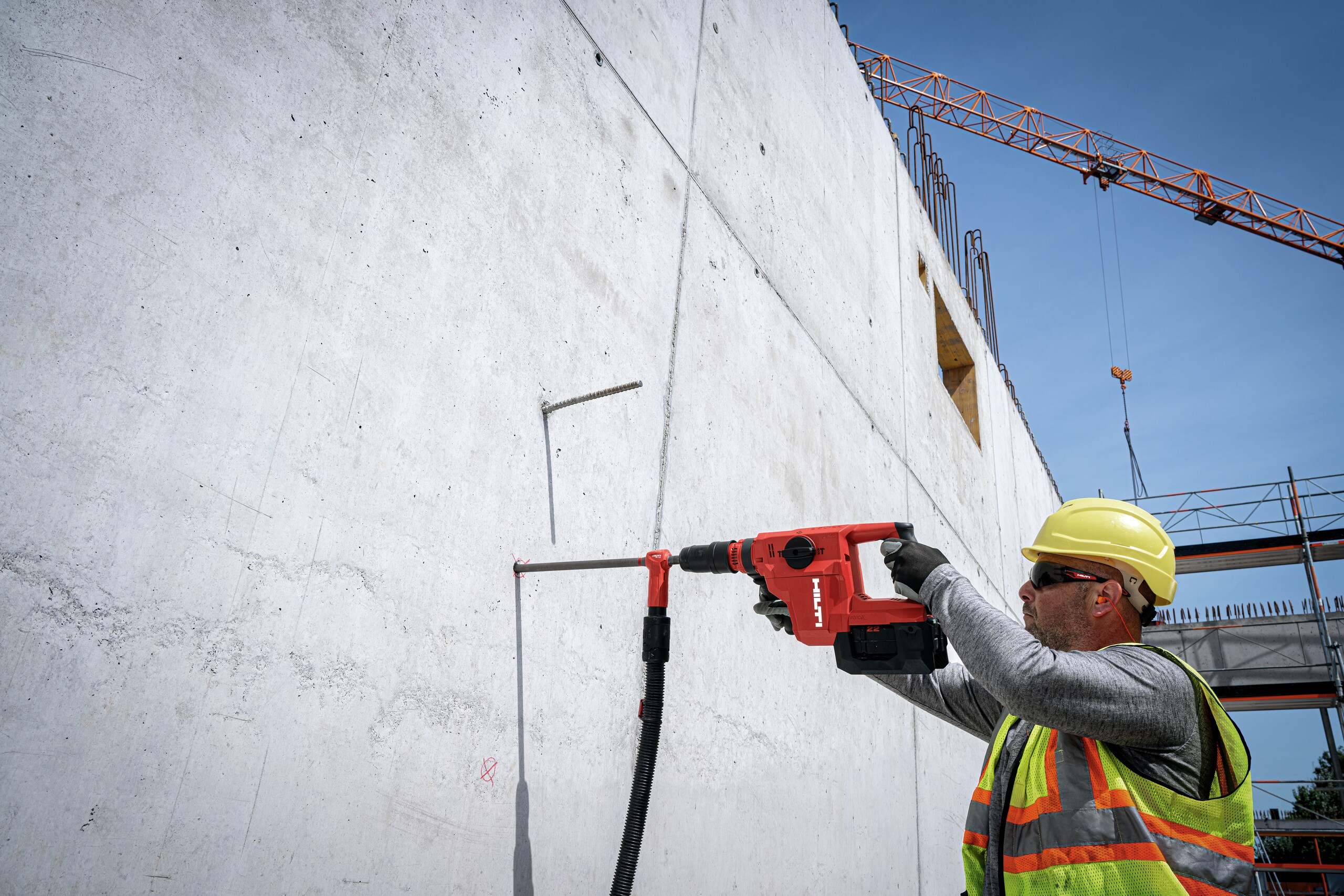 Durch Verwendung von Hilti Hohlbohrern wird der Staub bereits während des Bohrvorgangs durch den angeschlossenen Bau-Entstauber zuverlässig am Bohrkopf abgesaugt. So sind Sie und Ihre Mitarbeiter bei Bohrarbeiten weniger Staub ausgesetzt.
